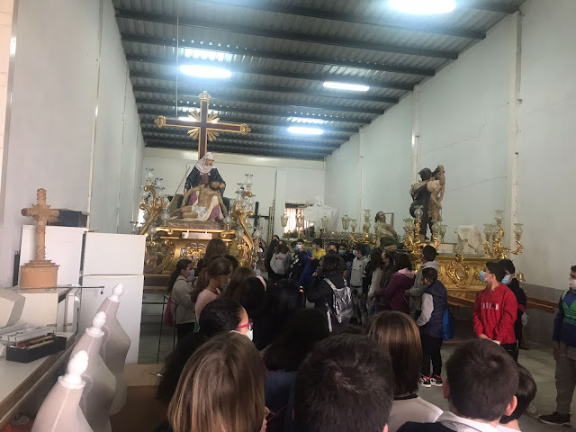 Como cada año, Dña. Paquita, maestra de Religión, intenta concienciar al alumnado del significado Religioso de la Semana Santa, a la vez de dar a conocer diferentes manifestaciones populares que se realizan sobre la misma. Hoy miércoles día 30 de marzo y en días posteriores, el alumnado que recibe clases de esta área visita los locales de algunas Cofradías, como la del Cristo del Perdón, de cuya imagen principal existen tantos devotos en nuestra población. También se visita la Iglesia de San Juan Bautista, donde Dña. Paquita continúa con la formación, realizando algunas preguntas sobre lo que han visto, pudiendo comprobar sus conocimientos y aclarándolos cuando se ve necesario. En todo momento, el alumnado está acompañado por el profesorado.